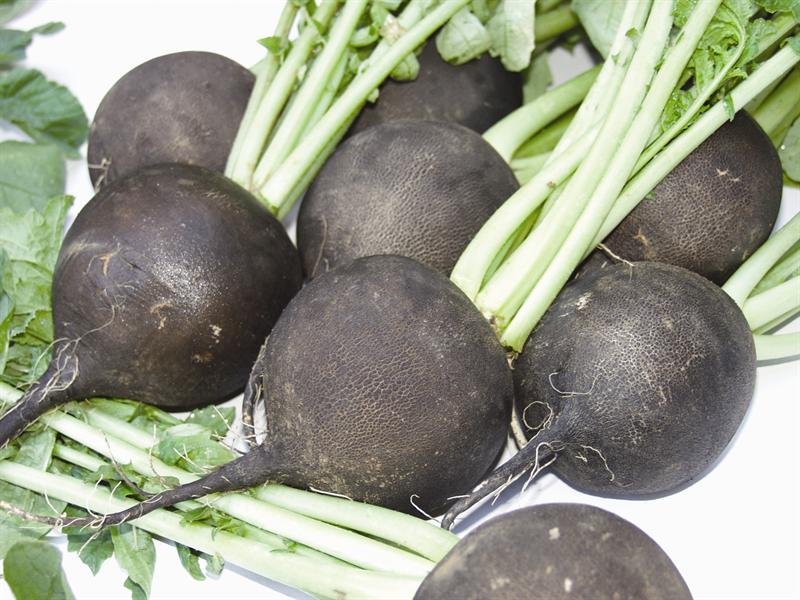 - Radis d’hiver : « Rose d’hiver de Chine » et « Violet de Gournay » à chair blanche; et « Noir long poids d’horloge », à chair blanche qui peut atteindre 25 cm.